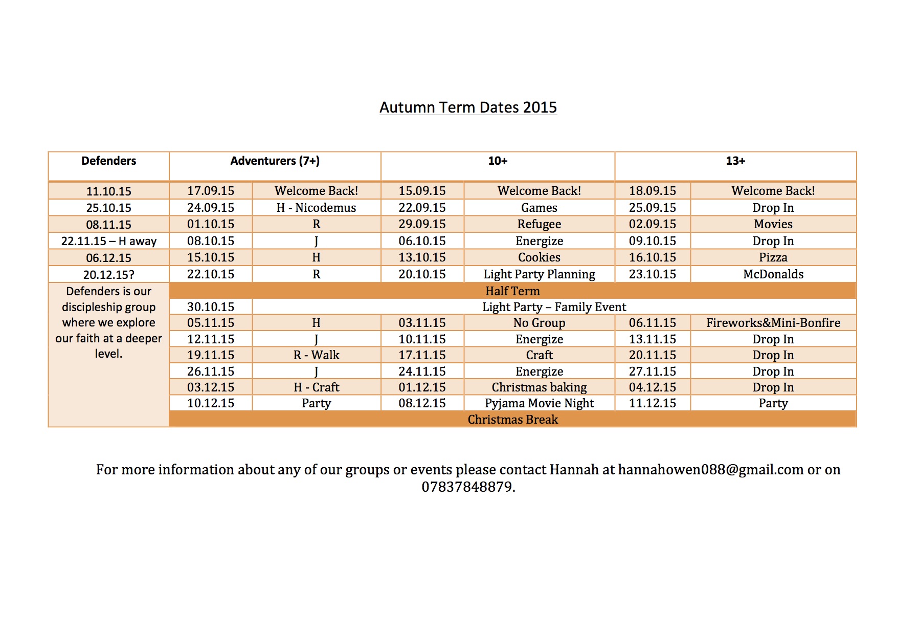 The following are the dates for this term (click on picture for a bigger view), keep checking back here for upcoming dates and events.