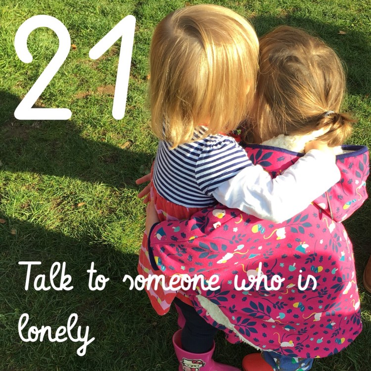 Today’s challenge is an important one this close to Christmas. Christmas TV adverts often show the importance of being with people, but do they just give us that sweet “aww that’s nice” feeling or do they prompt us into action? A survey released earlier in the year showed that 5% of adults reported feeling lonely “often” or “always”. That would suggest that there is a large amount of people within our own community who suffer from loneliness.